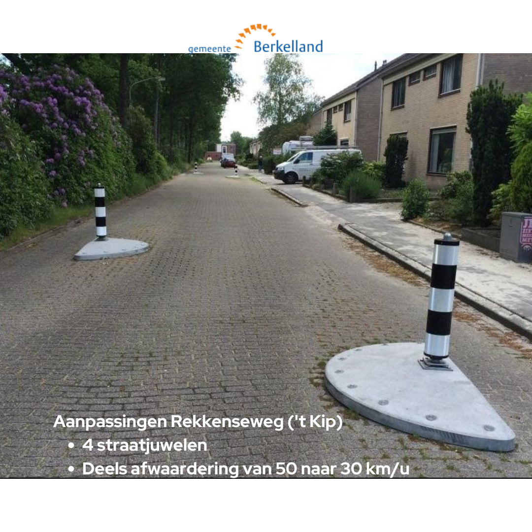 De Rekkenseweg op het gedeelte van ’t Kip wordt – mede op verzoek van aanwonenden – afgewaardeerd van 50 km/uur naar 30 km/uur. Hierover heeft Gemeente Berkelland een verkeersbesluit genomen. Vanaf het bebouwde kombord, komende vanaf Eibergen, gaat eerst een stuk 50km/u gelden, voordat overgegaan wordt naar 30km/u. Hierdoor krijgen automobilisten voldoende tijd om hun snelheid te minderen.